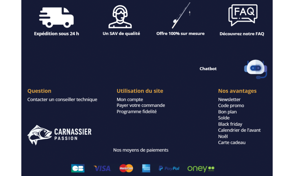 Footer avec certaines informations indispensables pour un site e-commerce.
